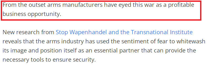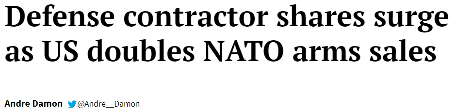 “歐盟觀察家”網(wǎng)站發(fā)文指出,美西方軍工企業(yè)從一開始就利用恐懼情緒,將自己定位為可以提供安全的重要合作伙伴,把俄烏沖突視為有利可圖的商機。