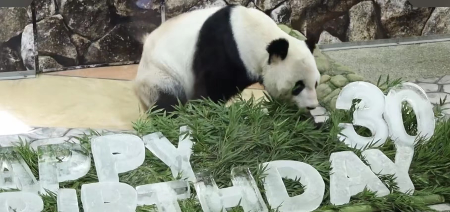 據(jù)報(bào)道,“永明”靠近竹子制成的盤(pán)子后,就開(kāi)始坐著吃了起來(lái)。飼養(yǎng)人員陣內(nèi)郁佳(34歲)對(duì)“永明”表示了感謝,稱(chēng)“抱著今后也希望加油的心情,準(zhǔn)備了禮物。”