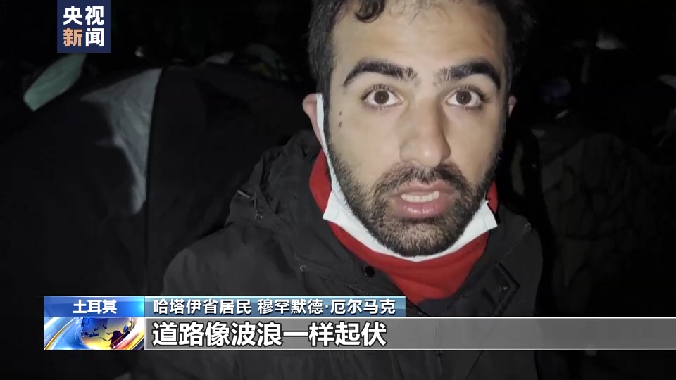 哈塔伊省居民 穆罕默德·厄爾馬克:(當(dāng)時)我就在大樓前面,道路像波浪一樣起伏,建筑前后搖晃,汽車被從左甩到右。我已經(jīng)是地震的受害者了,我住的大樓就在馬路對面,我已經(jīng)在車?yán)锼?5天了。