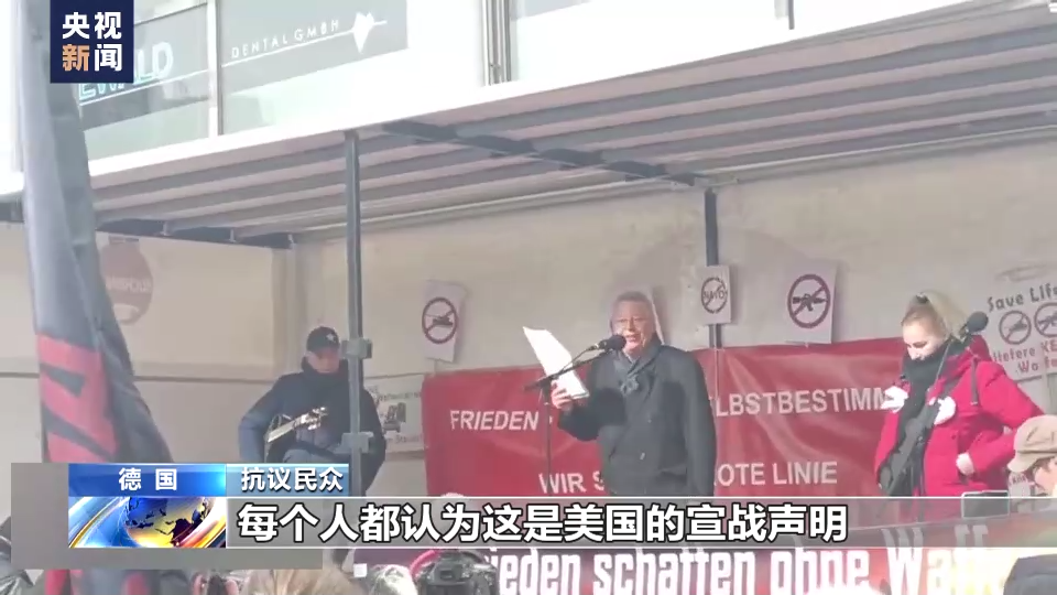 抗議民眾:每個人都認(rèn)為這是美國的宣戰(zhàn)聲明,對此我們只能說,美國人滾回家。我們今天聚集在此要求和平,為了我們的未來,為了我們的孩子,為了我們的世界。我們不要第三次世界大戰(zhàn),這場戰(zhàn)爭不會有贏家。
