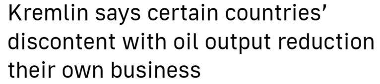 俄總統(tǒng)新聞秘書佩斯科夫則針對美方回應(yīng)強調(diào),“歐佩克+”部分國家決定減產(chǎn)意在支撐油價,是有關(guān)國家的獨立決定,“其他國家滿不滿意是他們自己的事”。