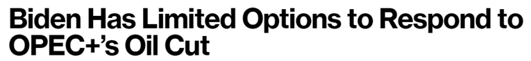 這次“歐佩克+”宣布減產(chǎn)后,彭博社分析說,如今拜登手中能用來反制“歐佩克+”、爭奪全球石油市場主導(dǎo)權(quán)的牌比去年更少了。