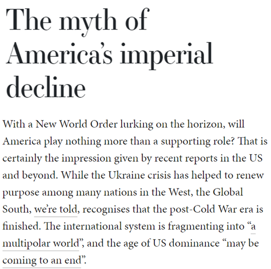 正如英國媒體分析所說,隨著烏克蘭危機(jī)促使國際新秩序的加速形成,美國不僅影響力和榨取資源的能力急劇下降,還日益被世界其他地區(qū)孤立。由美國主導(dǎo)的時代“可能即將結(jié)束”。