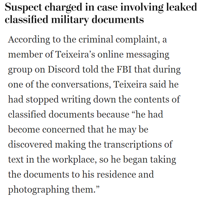 按照這名知情人士的說法,特謝拉一開始只是在上班時抄錄密件內(nèi)容并將相關(guān)信息發(fā)至網(wǎng)上,但因為擔(dān)心被抓,后來就把機(jī)密文件帶回其住所拍照,再發(fā)布到社交平臺。