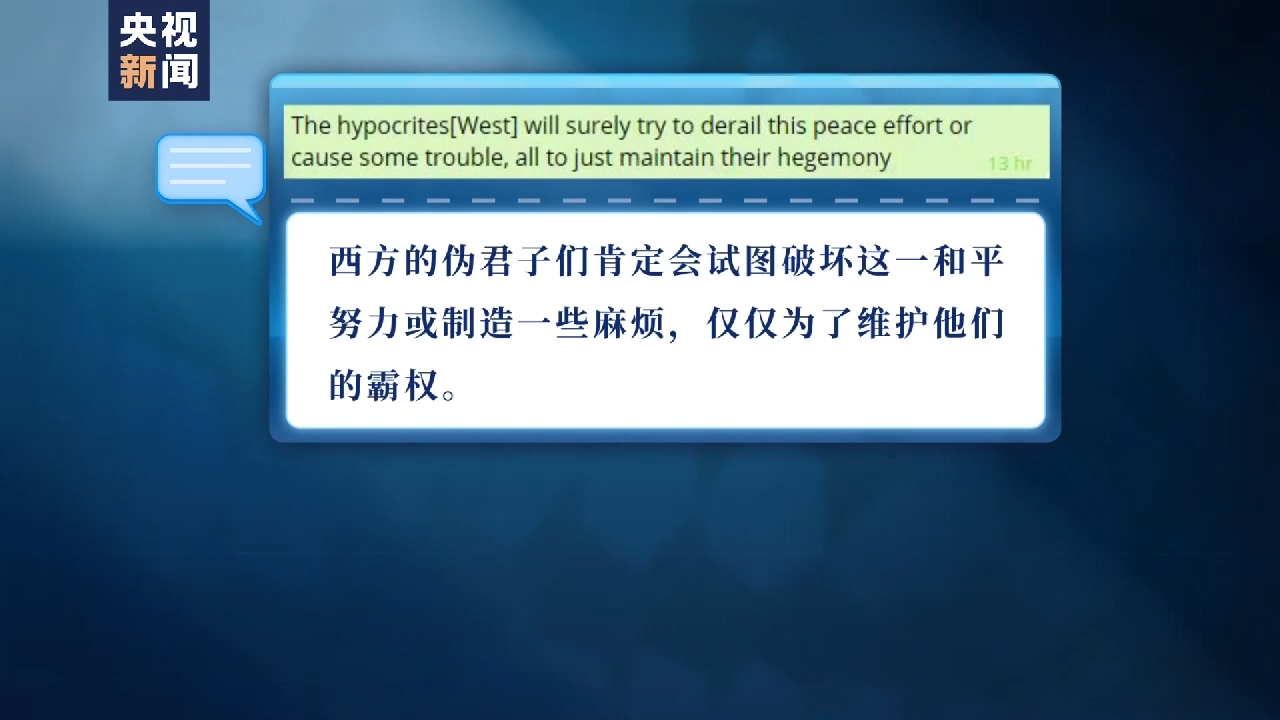 “西方的偽君子們肯定會試圖破壞這一和平努力或制造一些麻煩,僅僅為了維護他們的霸權(quán)。”