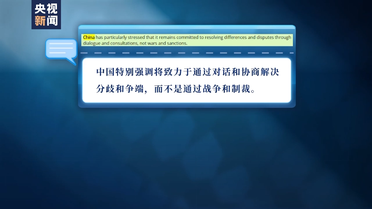 “中國特別強調(diào)將致力于通過對話和協(xié)商解決分歧和爭端,而不是通過戰(zhàn)爭和制裁。”