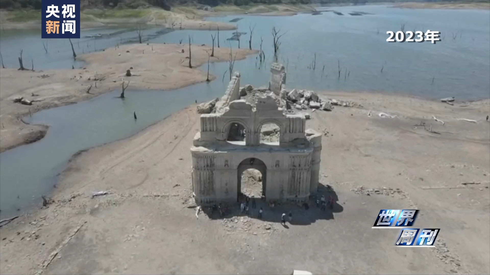 嚴重的高溫干旱之下,墨西哥南部一座曾被淹沒在水庫里的古教堂完全露出了水面。