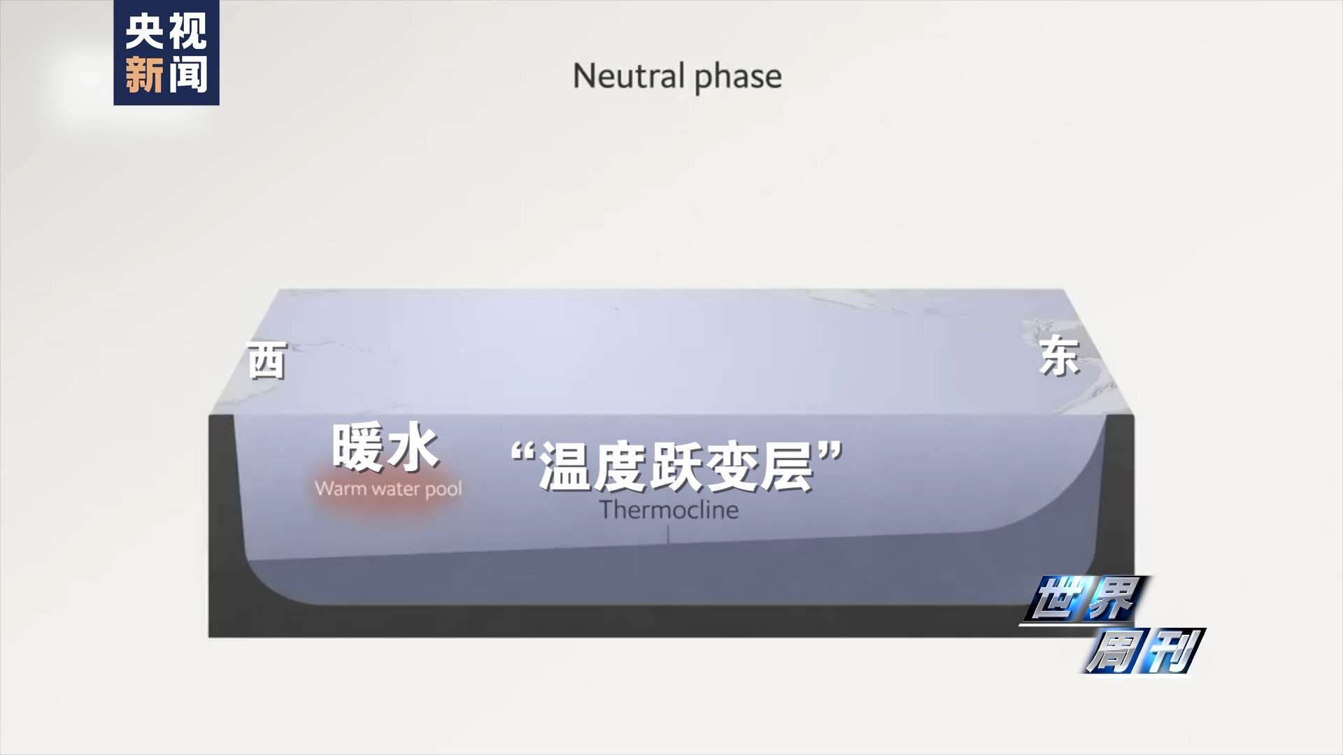 由于西太平洋表面有了更多的暖水,溫躍層在此被向下推,而東太平洋的溫躍層則不斷上升,從而產(chǎn)生了“上升流”。