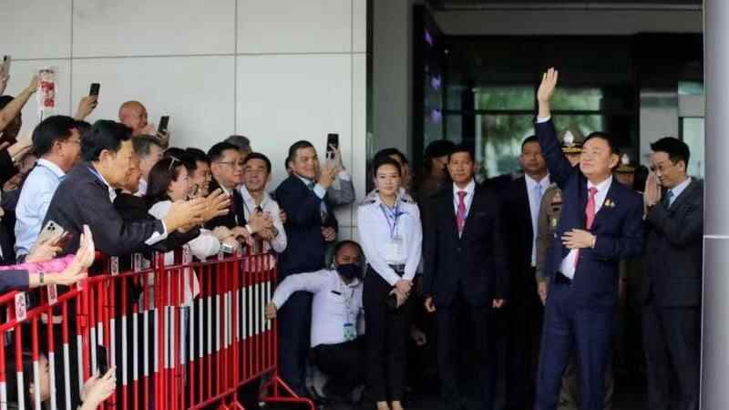 報(bào)道稱(chēng),流亡海外15年后,現(xiàn)年74歲高齡的他信于22日首次返回泰國(guó),數(shù)千名支持者和多名為泰黨領(lǐng)袖在機(jī)場(chǎng)迎接。