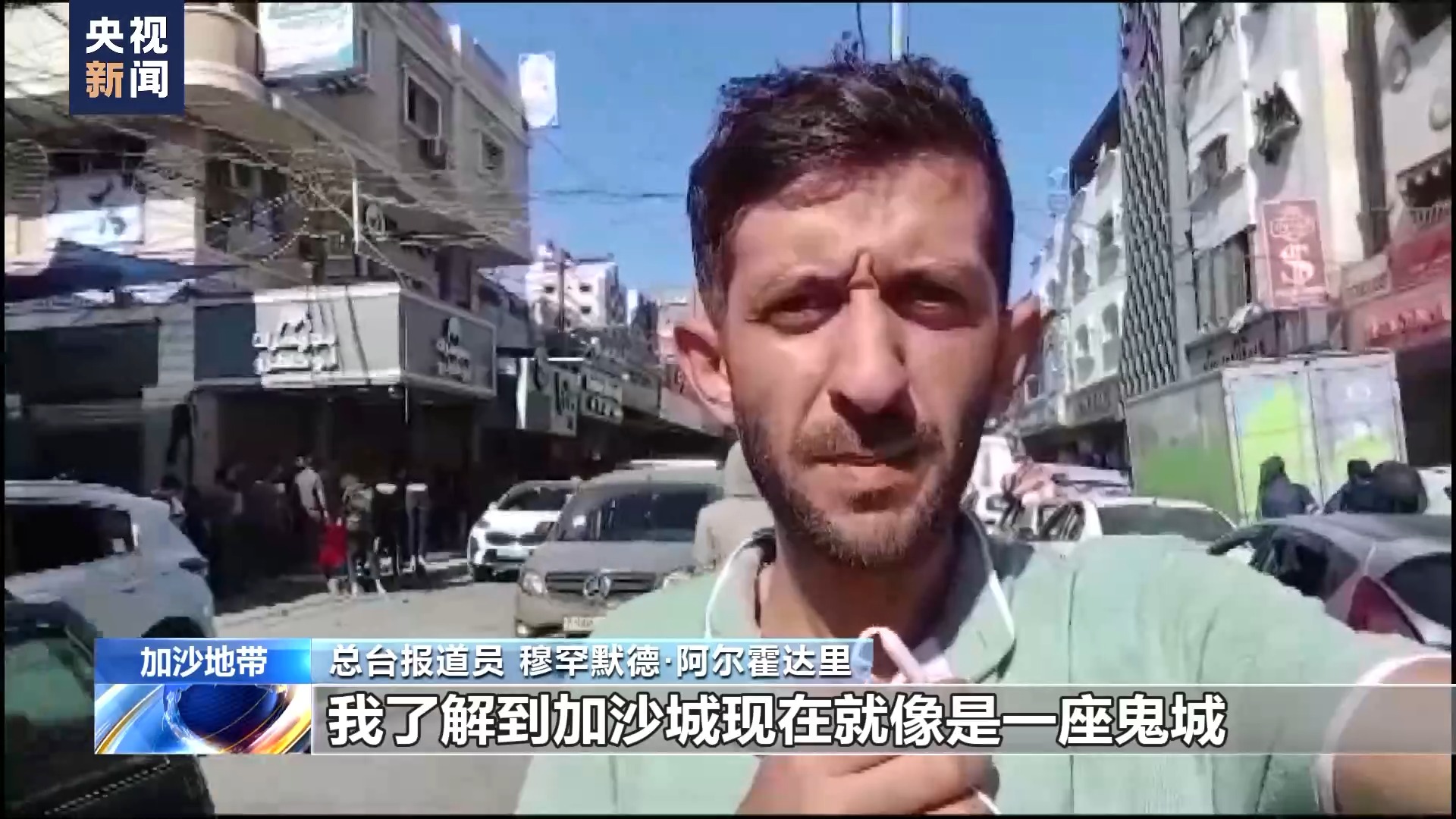 總臺報道員 穆罕默德·阿爾霍達(dá)里:我了解到加沙城現(xiàn)在就像是一座鬼城。那里沒有人,房屋、道路和社區(qū)都被炸毀,加沙城的一切都被摧毀了。而現(xiàn)在全加沙也沒有安全的地方,即使在加沙南部也不安全,因為以軍的空襲是無預(yù)警的。加沙目前就是這樣的情況。