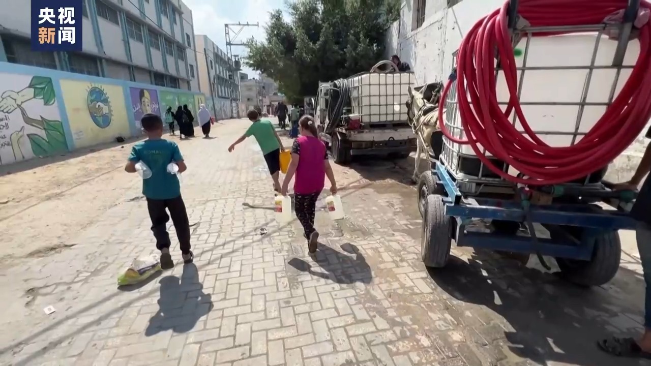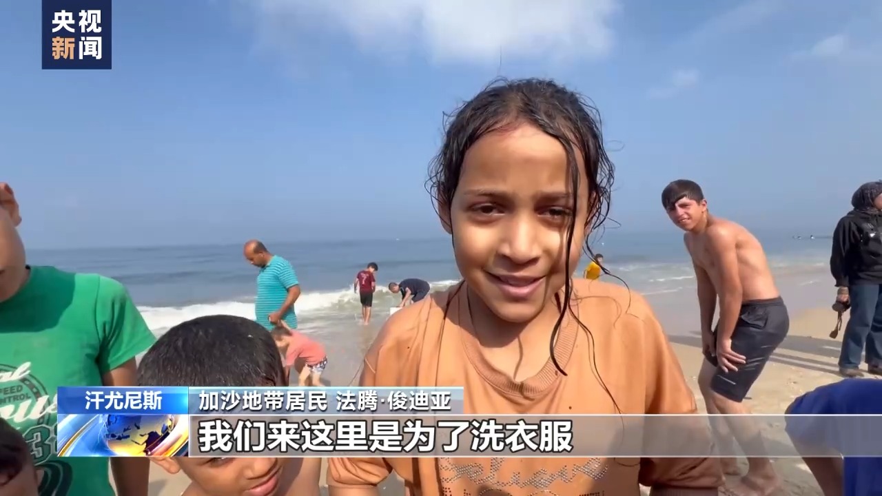 加沙地帶居民法騰·俊迪亞:我們逃難來(lái)到學(xué)校(臨時(shí)庇護(hù)所),但那里沒(méi)有水,我們來(lái)這里是為了洗衣服,清洗家居用品,還要把海水拎回去洗衣服,(庇護(hù)所的)供水被切斷了,那里的供水只維持了兩三天。