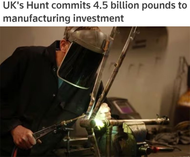 英國財政大臣亨特表示,整個制造業(yè)占英國出口總額的43%以上,雇用約260萬人。這筆投資將支持英國處于世界前沿的制造業(yè)領(lǐng)域,促進(jìn)英國經(jīng)濟(jì)發(fā)展,并且創(chuàng)造更多、更高薪的就業(yè)機會。