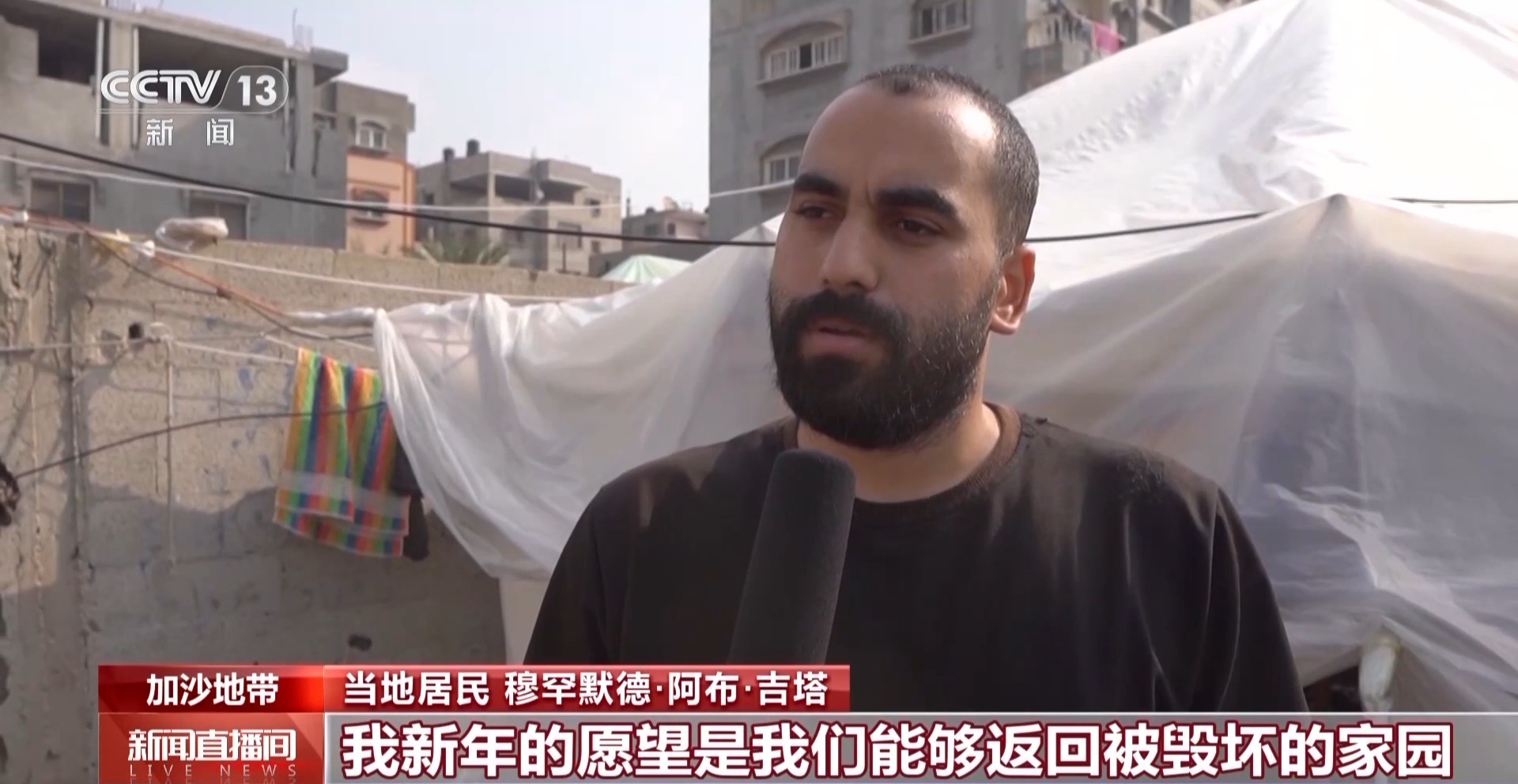 當(dāng)?shù)鼐用?穆罕默德·阿布·吉塔:我新年的愿望是我們能夠返回被毀壞的家園。在這場(chǎng)戰(zhàn)爭(zhēng)塵埃落定后,即使是在我們家園的廢墟上住帳篷,那也是回家了。