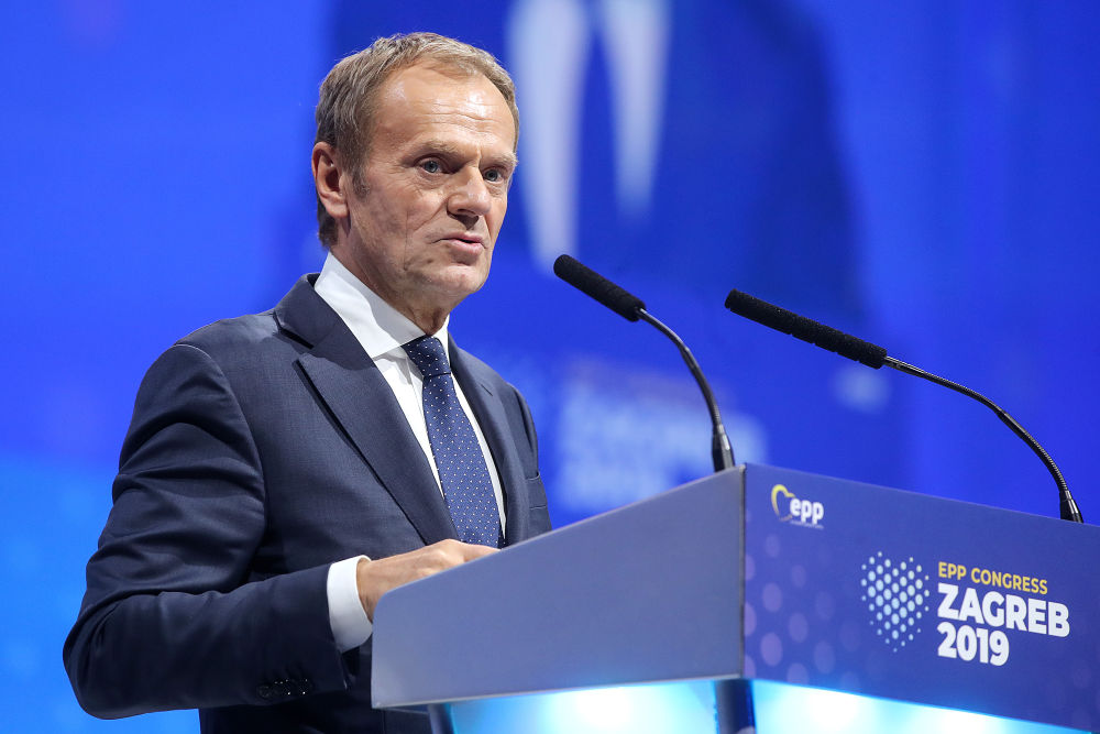 2019年11月20日,在克羅地亞首都薩格勒布,唐納德·圖斯克在歐洲人民黨大會(huì)上講話。新華社發(fā)(戈蘭·史坦?jié)蔂枖z)
