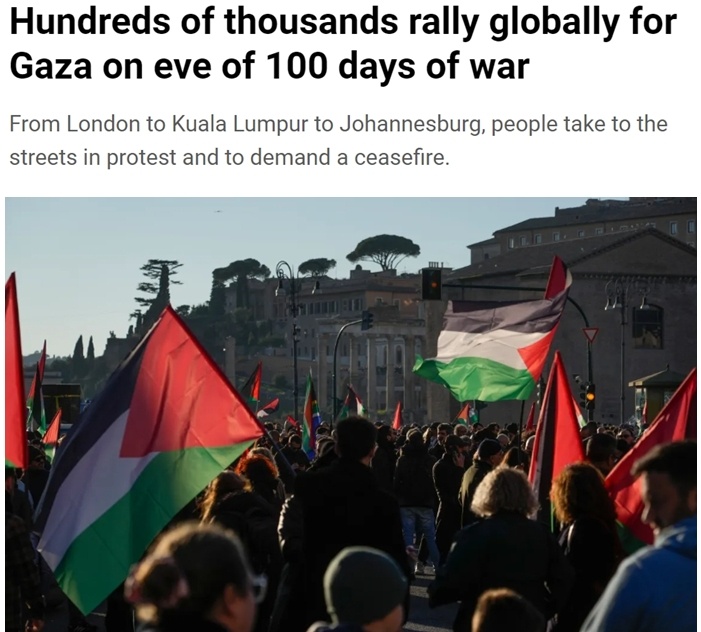 不僅是以色列民眾,在巴以沖突持續(xù)第100天之際,全球多個(gè)國(guó)家爆發(fā)不同規(guī)模的示威游行。