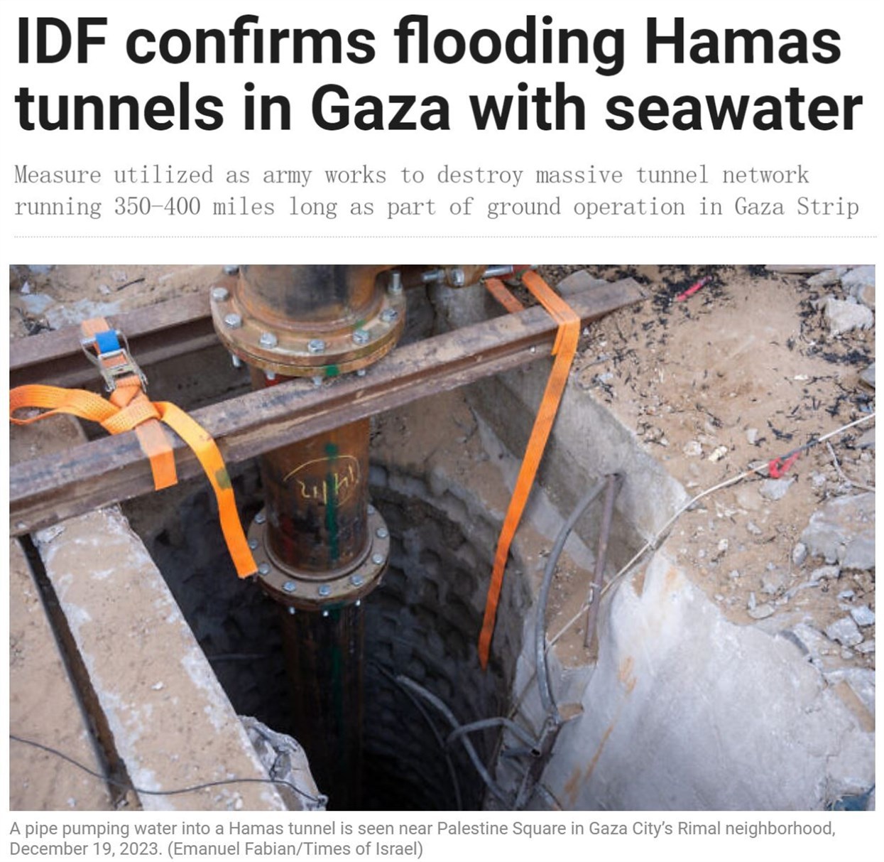 去年12月有媒體爆料,以色列國(guó)防軍在加沙北部建造了7座水泵,打算引海水灌入地道。