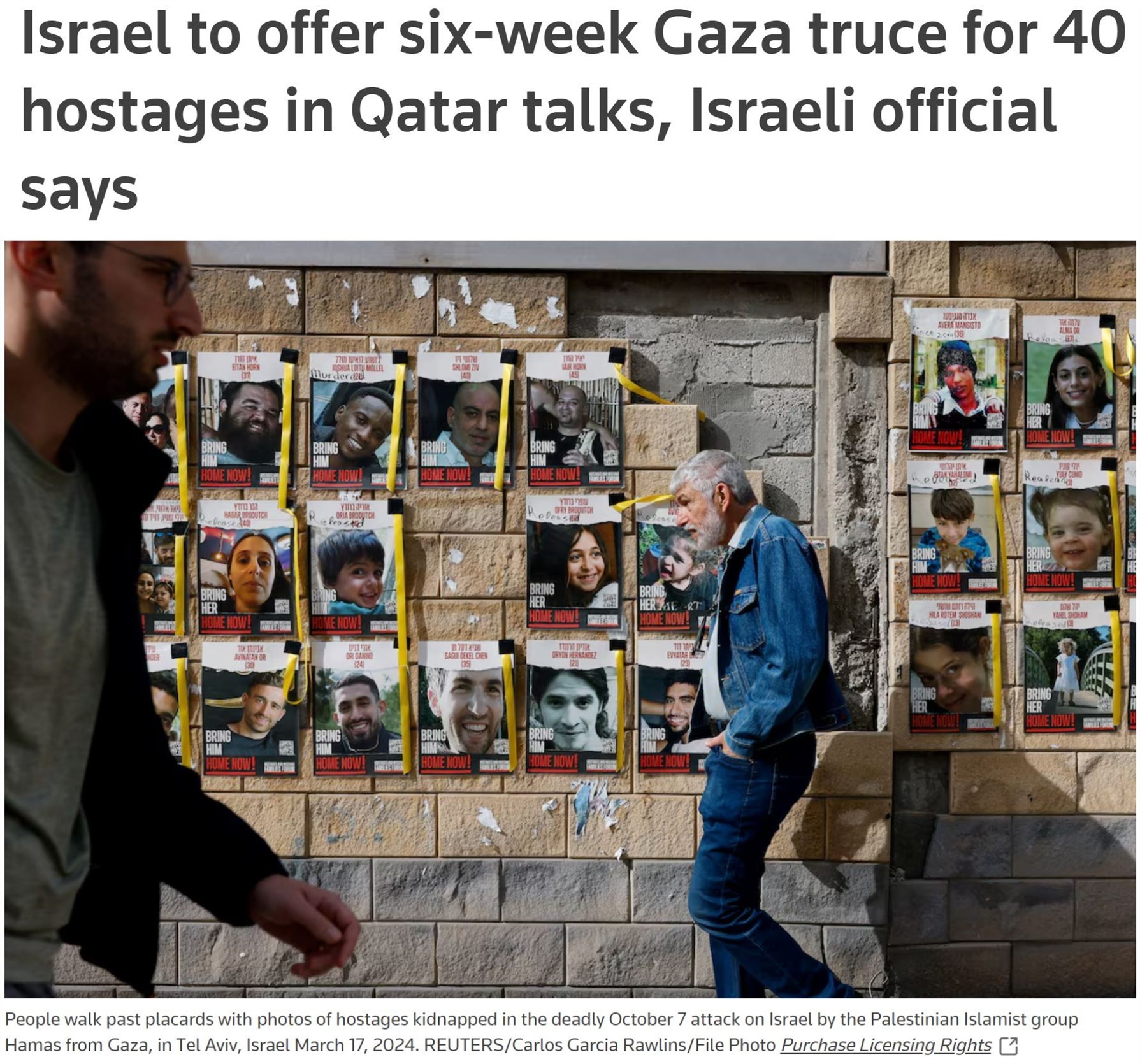 據(jù)以色列官員透露,以方希望能達成一個為期6周的停火,在此期間哈馬斯能釋放約40名被扣押人員。而哈馬斯則在上周給出了一份全新的三階段停火方案。