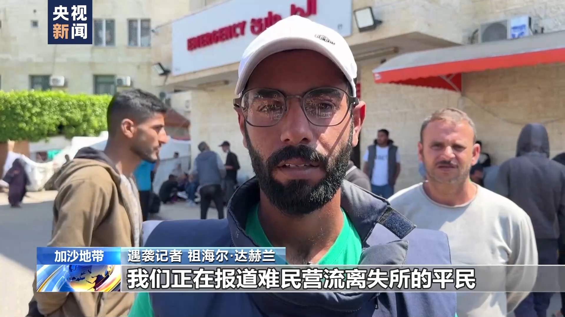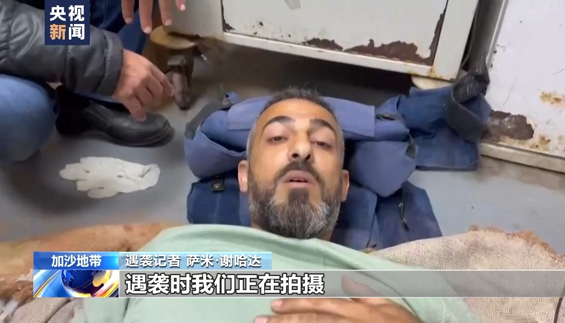 遇襲記者 祖海爾·達(dá)赫蘭:在努賽賴(lài)特難民營(yíng)北部發(fā)生了什么呢?我們正在報(bào)道難民營(yíng)流離失所的平民,我們?cè)谂臄z采訪(fǎng)的時(shí)候,站在一個(gè)十字路口,很不幸,一群記者成為了襲擊目標(biāo),我的記者同事薩米·謝哈達(dá)受傷了。很不幸,他的右腿直接斷了。