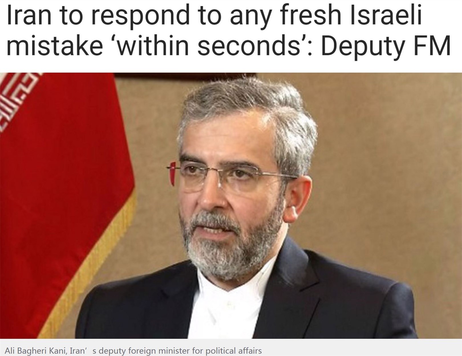 伊朗外交部副部長阿里·巴蓋里·卡尼15日也警告說,伊朗將在“幾秒鐘內(nèi)”對以色列的任何“新錯誤”做出回應。他強調(diào),“如果以色列再次犯同樣的錯誤,他們應該期待更嚴厲、更快、更立即的反應”。