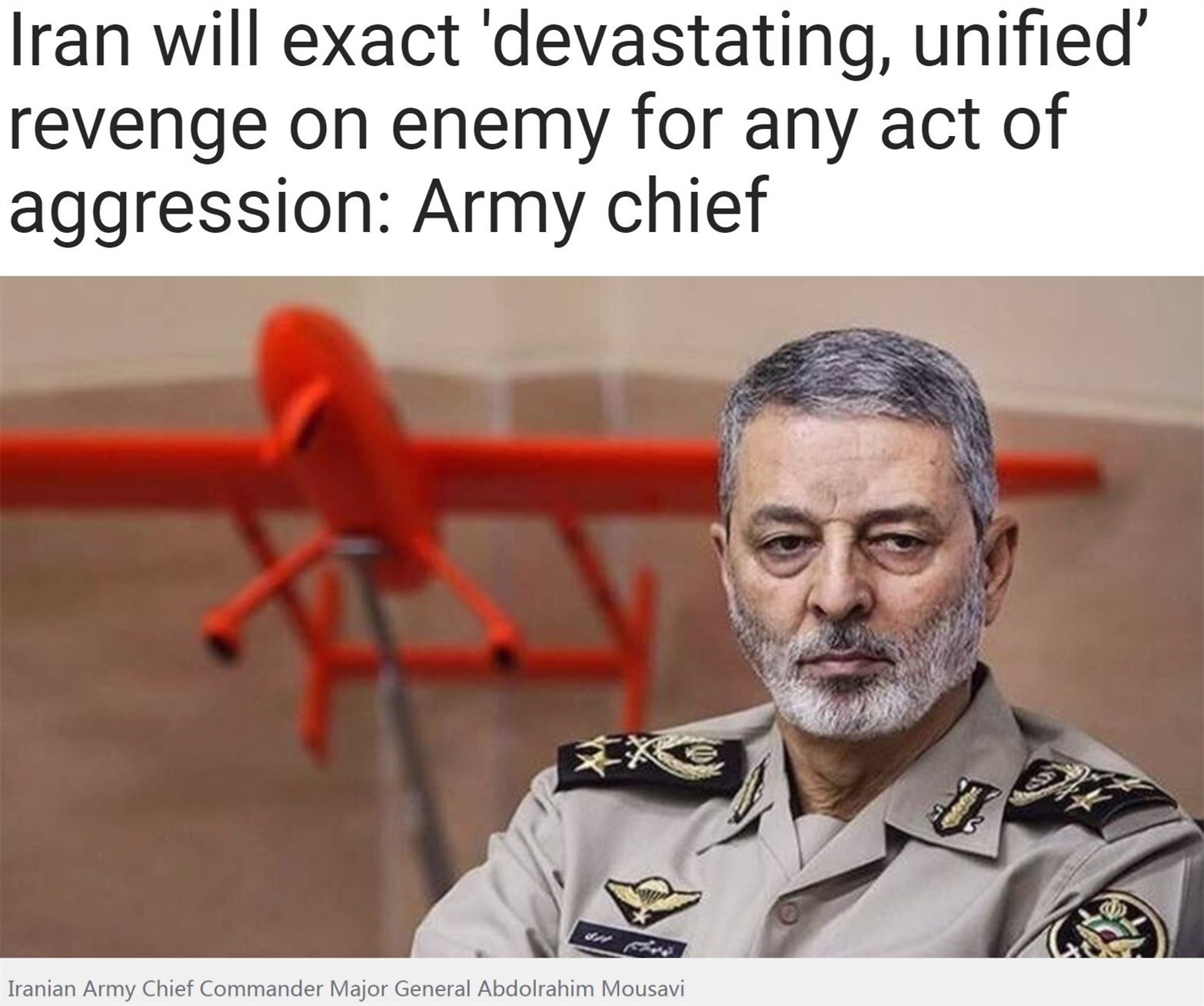 同一天,伊朗陸軍指揮官阿卜杜拉希姆·穆薩維也表示,伊朗將對敵人的“任何侵略行為”進行“毀滅性的、統(tǒng)一的”報復。