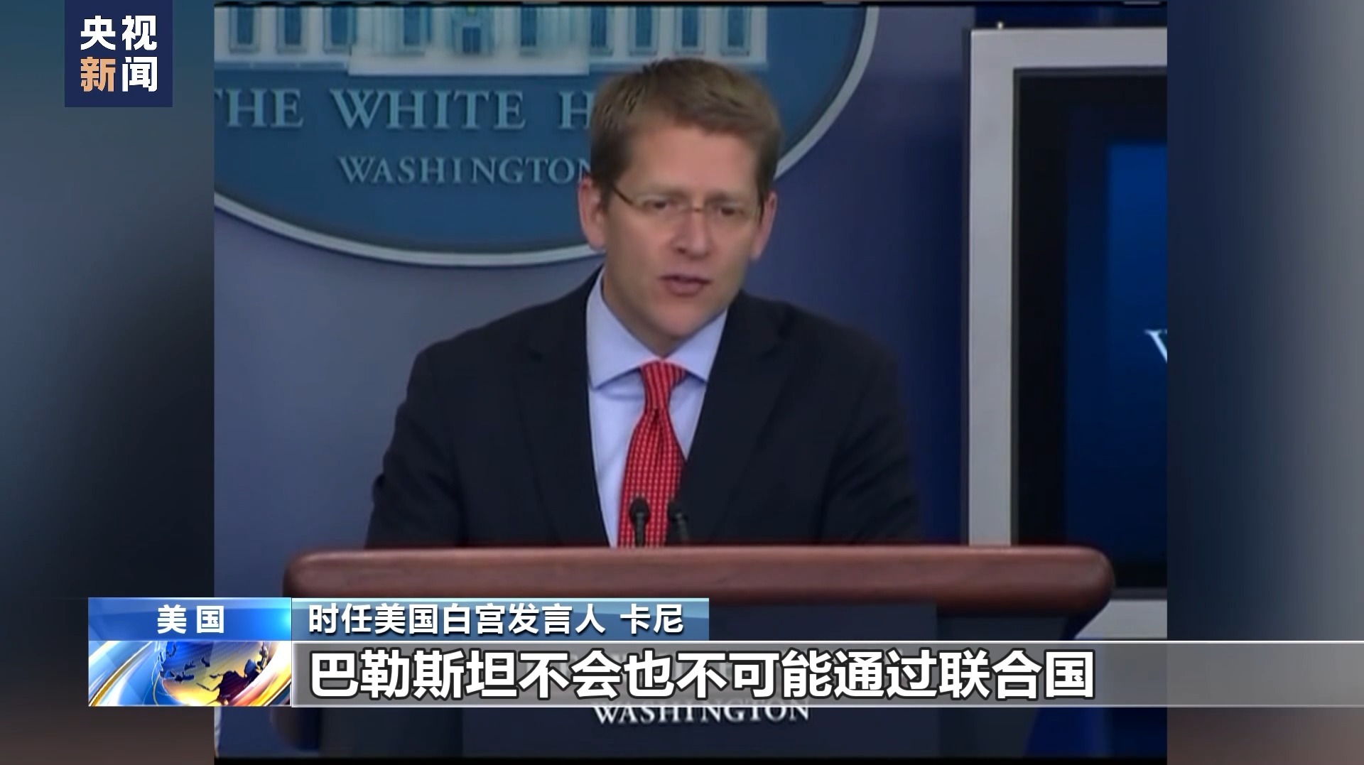 時(shí)任美國(guó)白宮發(fā)言人 卡尼(2011年):巴勒斯坦不會(huì)也不可能通過(guò)聯(lián)合國(guó)來(lái)獲得國(guó)家地位。