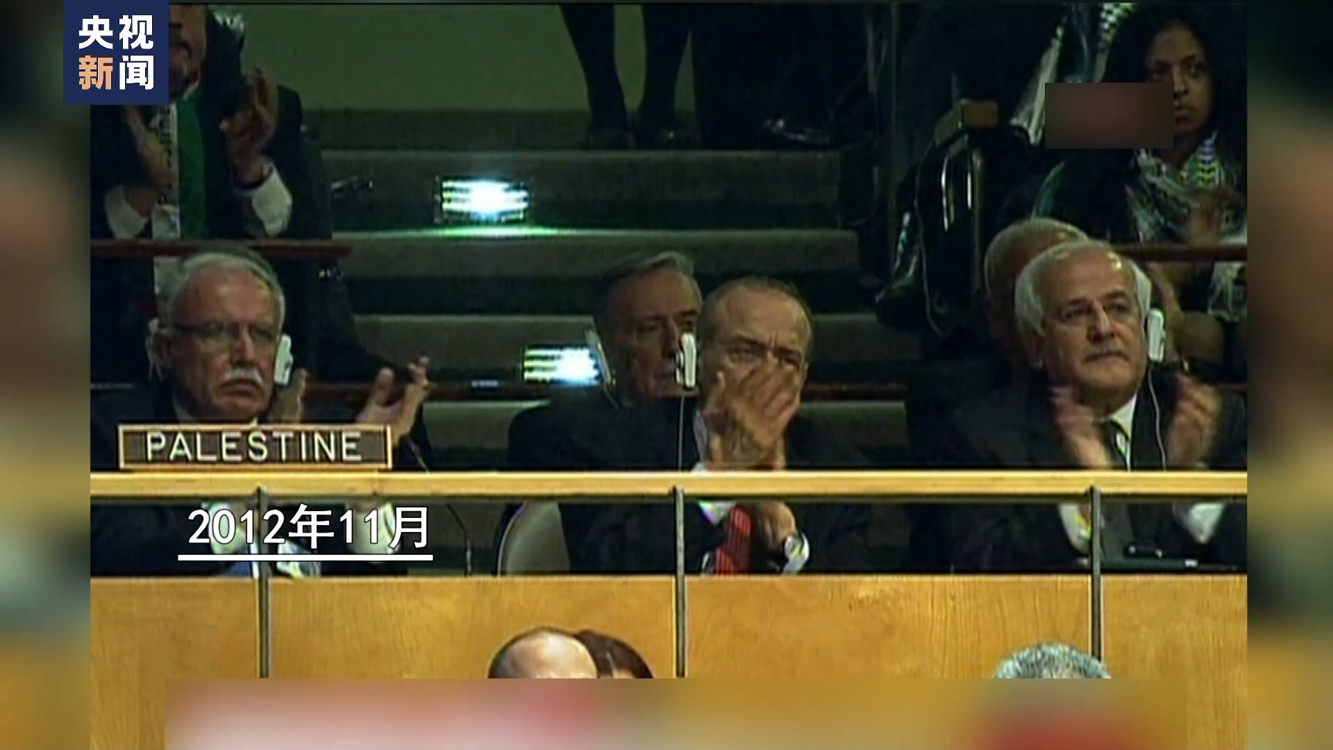 2012年11月,聯(lián)合國(guó)大會(huì)通過(guò)決議,給予巴勒斯坦聯(lián)合國(guó)觀察員國(guó)地位。