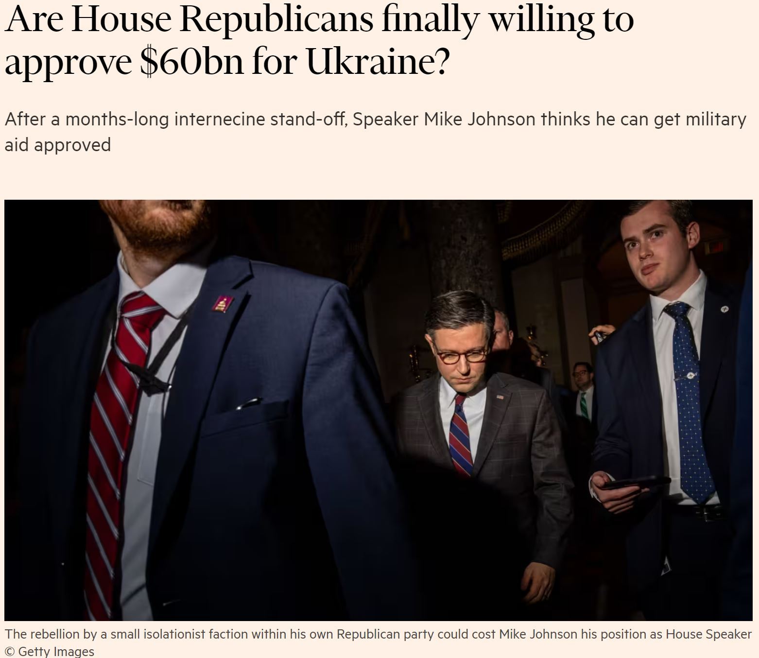 美國國會眾議院將于美國東部時間20日對一系列對外援助法案進(jìn)行最終表決,其中規(guī)模最大的是為烏克蘭提供大約600億美元的援助資金。