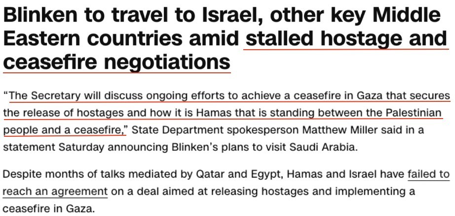此訪緣于以色列和哈馬斯之間的談判持續(xù)陷入僵局。盡管在卡塔爾和埃及的斡旋下進(jìn)行了數(shù)月的談判,哈馬斯和以色列仍未能就釋放人質(zhì)和在加沙實(shí)施?;疬_(dá)成協(xié)議。