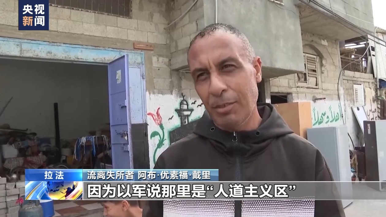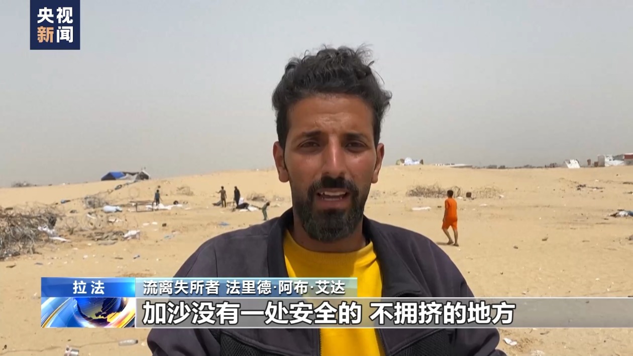 流離失所者 法里德·阿布·艾達:我們不知道去哪兒。加沙沒有一處安全的、不擁擠的地方。我們沒地方去,我們只能漫無目的地走,找一處空地。(來源:央視新聞客戶端)