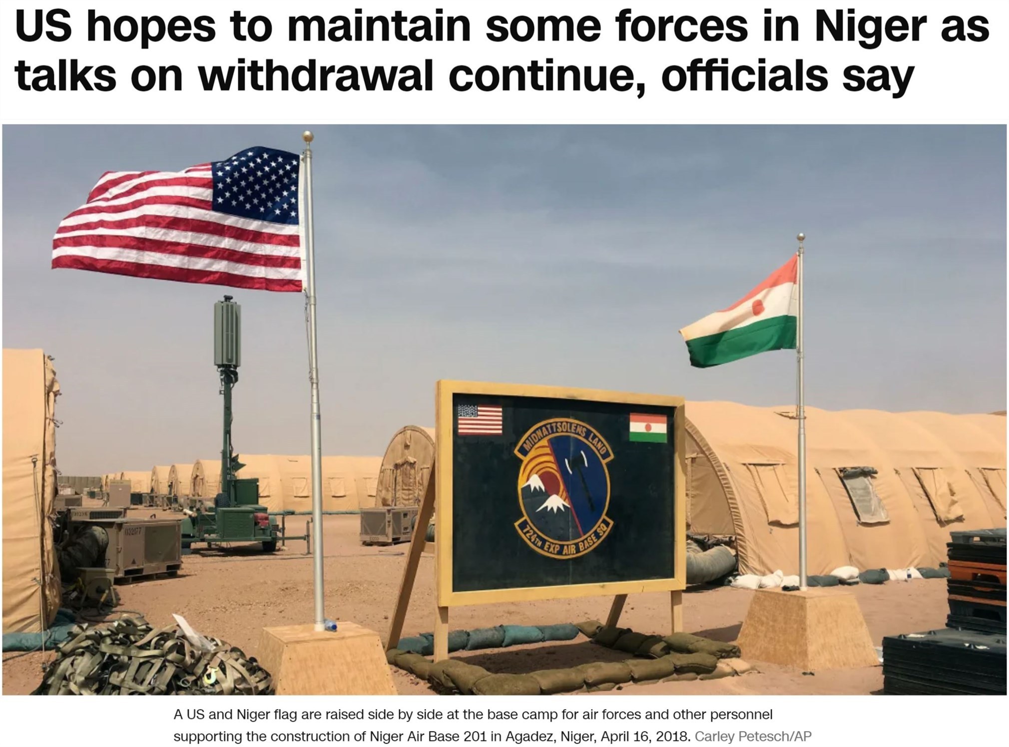 有報(bào)道稱(chēng),目前美國(guó)官員仍在與尼日爾政府就“是否有可能在當(dāng)?shù)乇A粢恍┟儡娙藛T”進(jìn)行談判,不過(guò)“希望渺茫”。