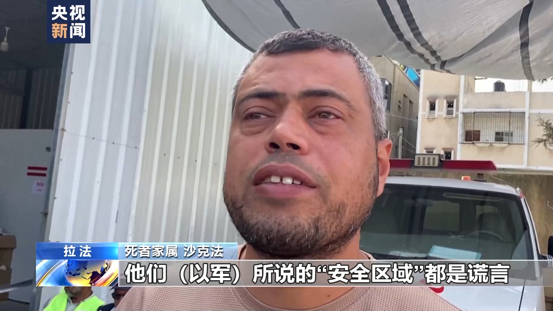 死者家屬 沙克法:他們(以軍)所說(shuō)的“安全區(qū)域”都是謊言,所謂的“安全區(qū)域”遭到的空襲和正在進(jìn)行軍事行動(dòng)的區(qū)域一樣多?,F(xiàn)在發(fā)生的事情就說(shuō)明,所謂的“安全區(qū)域”都是騙人的,不過(guò)是謊言。