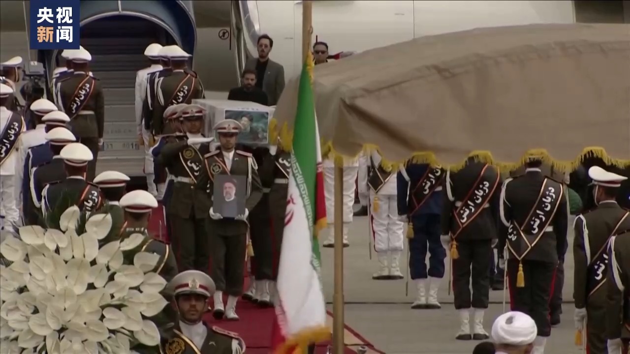 當(dāng)?shù)貢r(shí)間21日,萊希等人的遺體運(yùn)抵伊朗首都德黑蘭,伊朗軍方舉行了悼念儀式。
