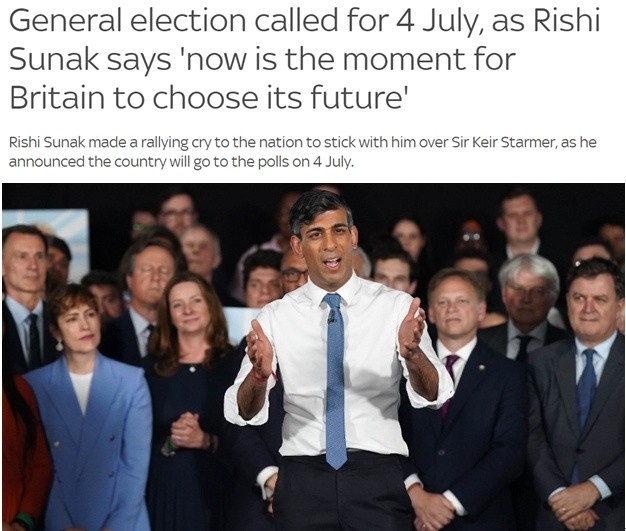 當(dāng)?shù)貢r(shí)間22日,英國(guó)首相蘇納克宣布,將在7月4日舉行大選。