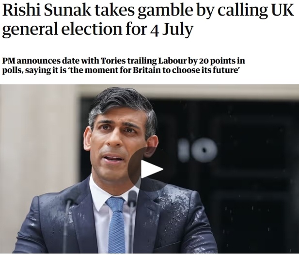 本月22日,英國(guó)首相蘇納克宣布,英國(guó)將于7月4日舉行大選,并請(qǐng)求解散議會(huì)。英國(guó)國(guó)王查爾斯三世已批準(zhǔn)這一請(qǐng)求。根據(jù)英國(guó)法律,議會(huì)在大選開始前25個(gè)工作日自動(dòng)解散。