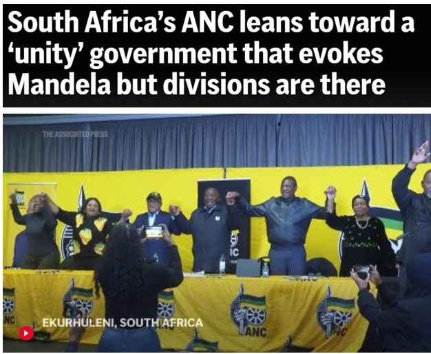 南非總統(tǒng)拉馬福薩在會(huì)后宣布,其所在的非國(guó)大決定與其他政黨進(jìn)行“廣泛合作”,組建聯(lián)合政府。