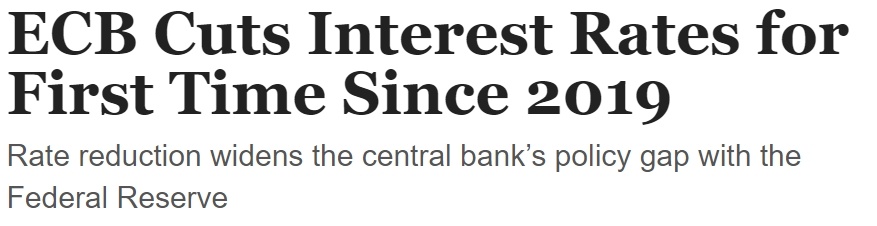 此外,歐洲央行近日進行了近5年來首次降息,但美聯(lián)儲則未做降息決定,這意味著美歐息差進一步加大。