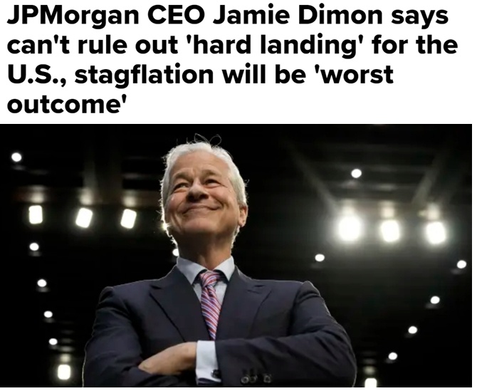 摩根大通董事長兼首席執(zhí)行官杰米·戴蒙近日表示,“美國經(jīng)濟最糟糕的結(jié)果將是‘滯脹’,即通脹率繼續(xù)上升,而經(jīng)濟增長在高失業(yè)率的情況下放緩”,“我認為,通脹比人們想象的更頑固”。