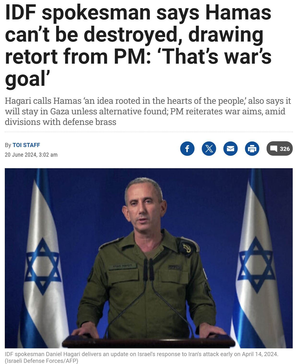 圍繞加沙地帶沖突局勢,近期以色列軍方和政府之間“摩擦頻現(xiàn)”。當?shù)貢r間19日,以色列國防軍發(fā)言人哈加里 在接受采訪時說,“讓哈馬斯消失”這種說法是誤導(dǎo)。哈馬斯是一種意識形態(tài),而意識形態(tài)無法被消滅。