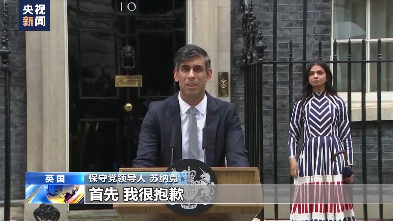 保守黨領導人 蘇納克:對于國家,我想說,首先我很抱歉,我為輸?shù)暨@次選舉負責。
