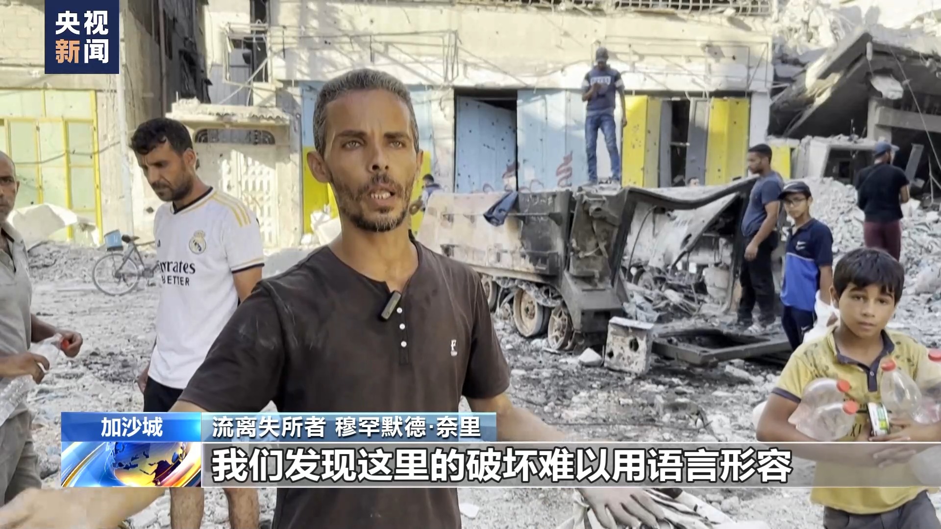 流離失所者 哈特姆·塔伊:離開(kāi)15天后,我們回到了舒賈亞。你看看這破壞,以軍什么都沒(méi)放過(guò),連樹(shù)都沒(méi)放過(guò),這里曾經(jīng)有很多綠植。石頭和樹(shù)做錯(cuò)了什么呢?我作為一個(gè)平民又做錯(cuò)了什么呢?這里發(fā)現(xiàn)了很多平民的遺體。平民們做錯(cuò)了什么呢?你們(以軍)正在對(duì)誰(shuí)作戰(zhàn)呢?是對(duì)平民嗎?還是對(duì)誰(shuí)呢?你們正在摧毀一切。