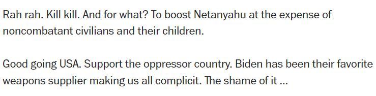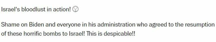 就在《華盛頓郵報》報道美國恢復向以色列交付500磅炸彈的消息后,網(wǎng)友紛紛發(fā)帖表達憤怒。