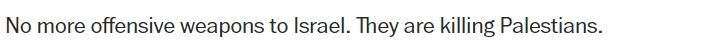 △網(wǎng)友評論:不要再向以色列提供進攻性武器。他們正在殺害巴勒斯坦人。