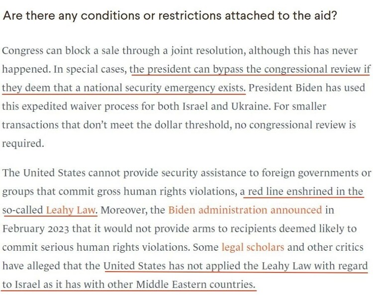 相反,如果總統(tǒng)認為存在“國家安全緊急狀況”,他可以繞過國會的審查。據(jù)美媒報道,本輪巴以沖突中,拜登政府就繞過國會批準了上百項對以軍售。