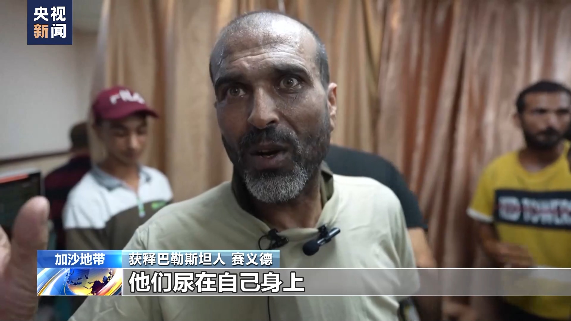 獲釋巴勒斯坦人 賽義德:有些人瘋了,他們尿在自己身上。那里有病人和被截肢者,他們被丟到一邊,得不到任何藥物,他們一直在尖叫。到了晚上,以色列人會(huì)帶狗來,向我們噴辣椒水,然后電擊我們,每天晚上都是這樣。