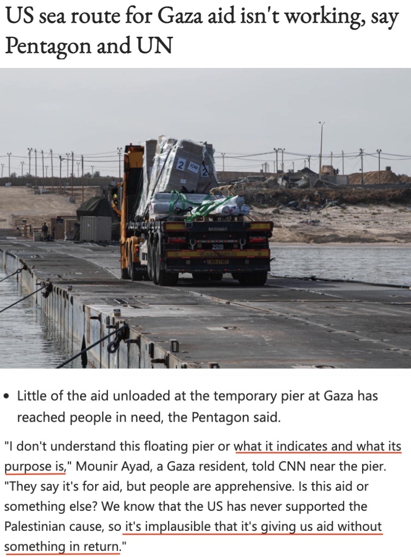 加沙居民穆尼爾·阿亞德就曾對美國媒體表示,他不明白這個臨時碼頭意味著什么,目的又是什么。