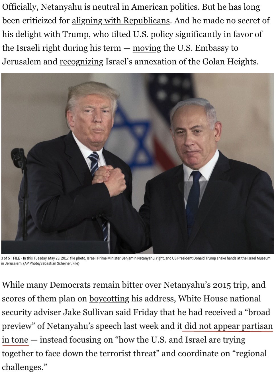 在2015年上一次應(yīng)邀到美國(guó)國(guó)會(huì)發(fā)表的演講中,由于內(nèi)塔尼亞胡公開抨擊時(shí)任美國(guó)總統(tǒng)、民主黨人奧巴馬力推的伊朗核協(xié)議,美以關(guān)系一度緊張。