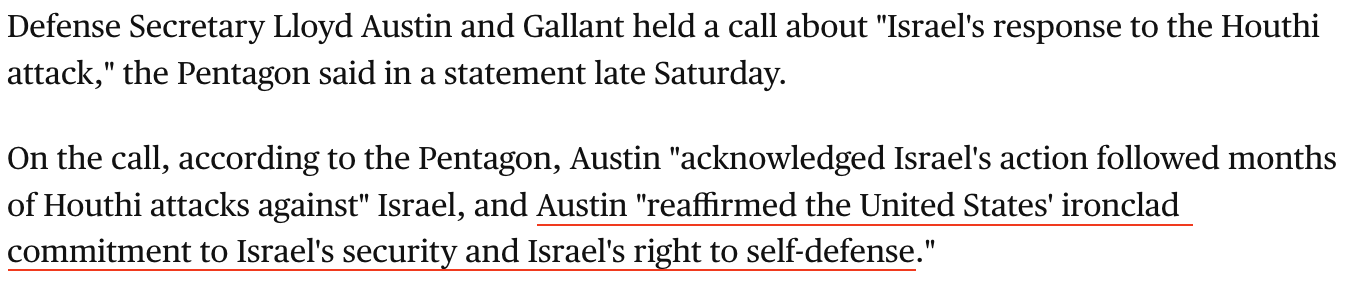 在以色列此次自作主張地對(duì)也門發(fā)動(dòng)空襲后,拜登政府馬上做出了和之前對(duì)以軍行動(dòng)的同樣反應(yīng):一邊聲明“美方?jīng)]有參與”,一邊重申美國(guó)支持“以色列的自衛(wèi)權(quán)”。