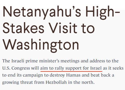 △美國(guó)外交關(guān)系協(xié)會(huì)網(wǎng)站:內(nèi)塔尼亞胡的目的是爭(zhēng)取美國(guó)對(duì)以色列的支持,因?yàn)橐陨姓趯で蠼Y(jié)束摧毀哈馬斯的行動(dòng),并消除來自北方的黎巴嫩真主黨日益增加的威脅。
