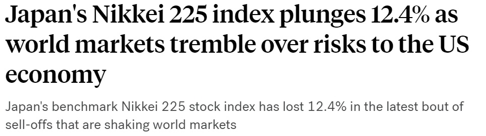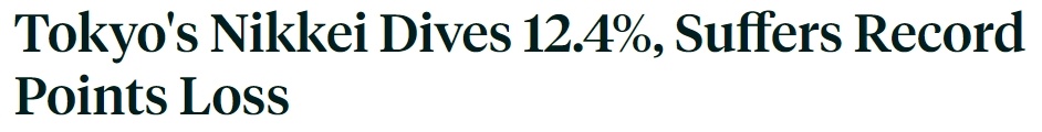 日經(jīng)指數(shù)創(chuàng)下史上最大跌幅,超越1987年10月“黑色星期一”的紀錄。