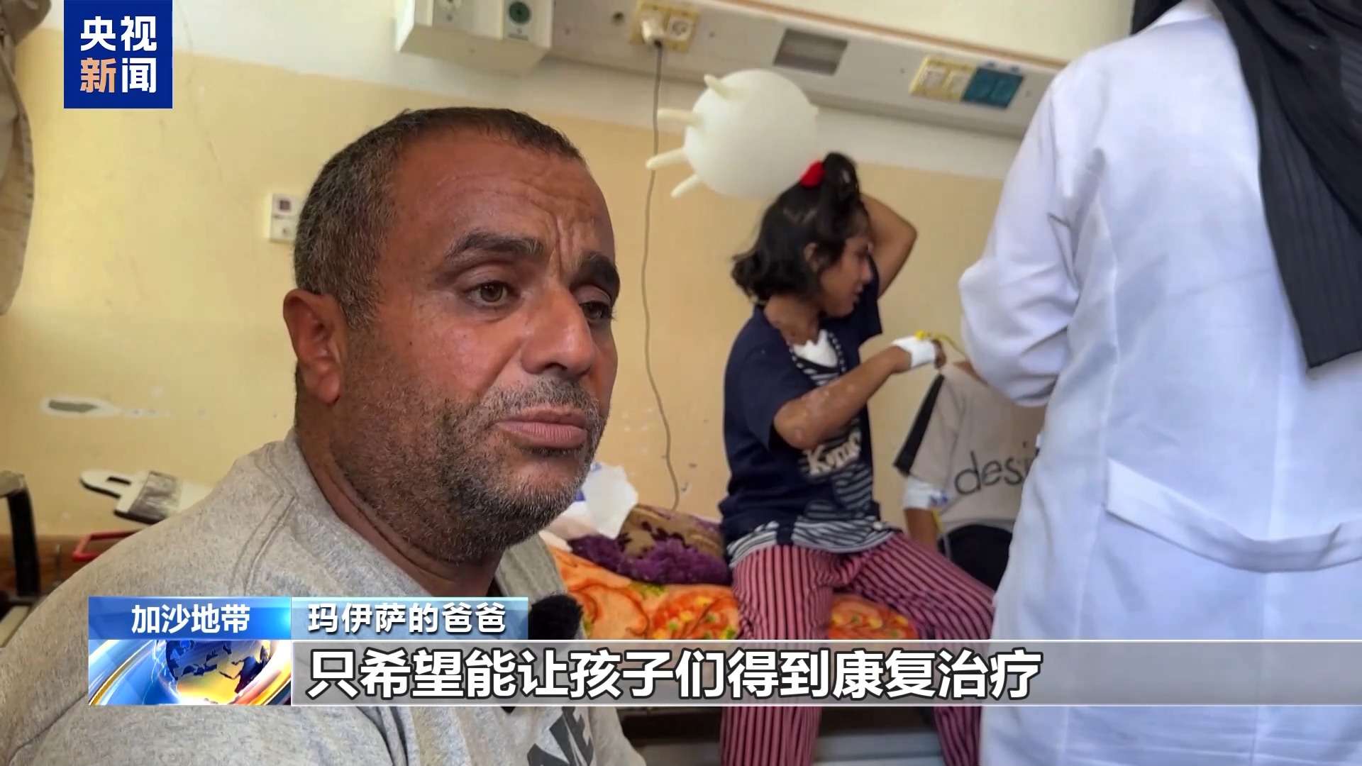 瑪伊薩的爸爸:我們請求大家關(guān)注我們,讓我們的孩子得到治療,我們沒有別的請求,只希望能讓孩子們得到康復(fù)治療。我的女兒們情況不太好,戰(zhàn)爭的代價(jià)不應(yīng)由她們承擔(dān),她們只是孩子,她們與這場沖突無關(guān)。我們想讓她們像別處的孩子一樣,過上無憂無慮的生活。我們眼看著自己的孩子走向死亡,卻無能為力,這種感覺太窒息了,現(xiàn)在坐在我的孩子們旁邊,我就是這種感受。